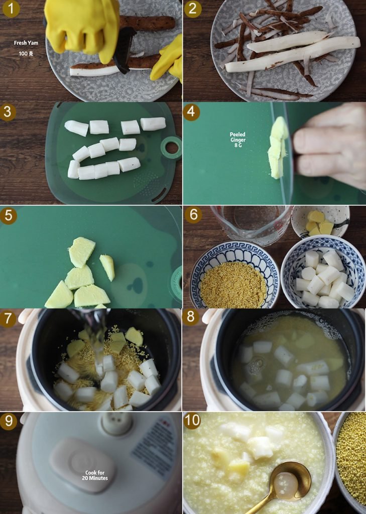 Today’s recipe is Yam and Millet Congee which is good for the spleen and stomach.